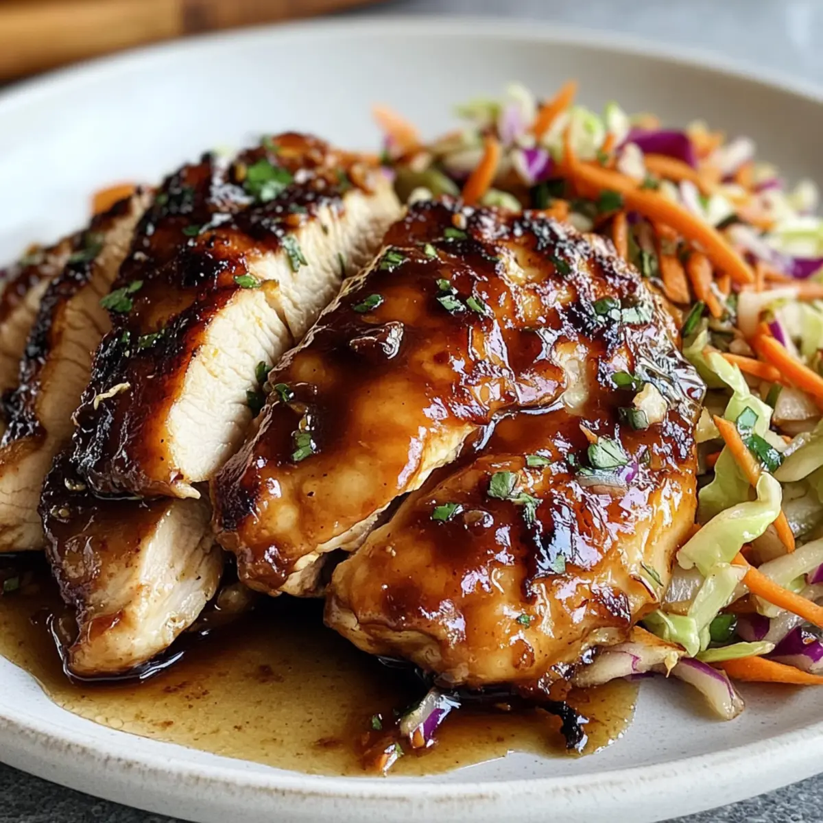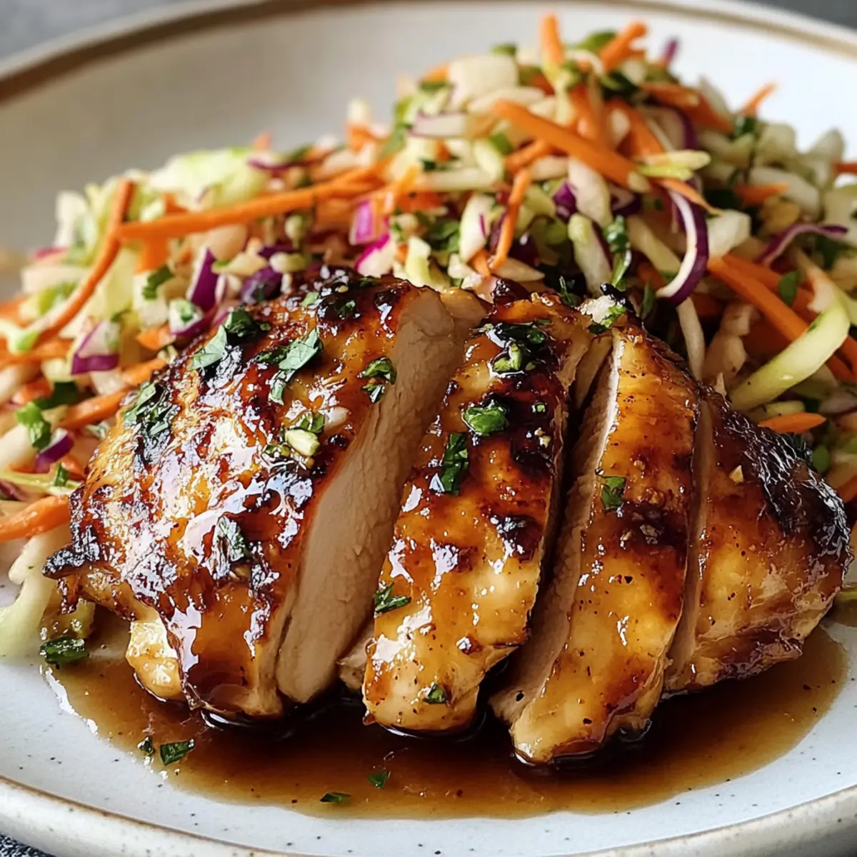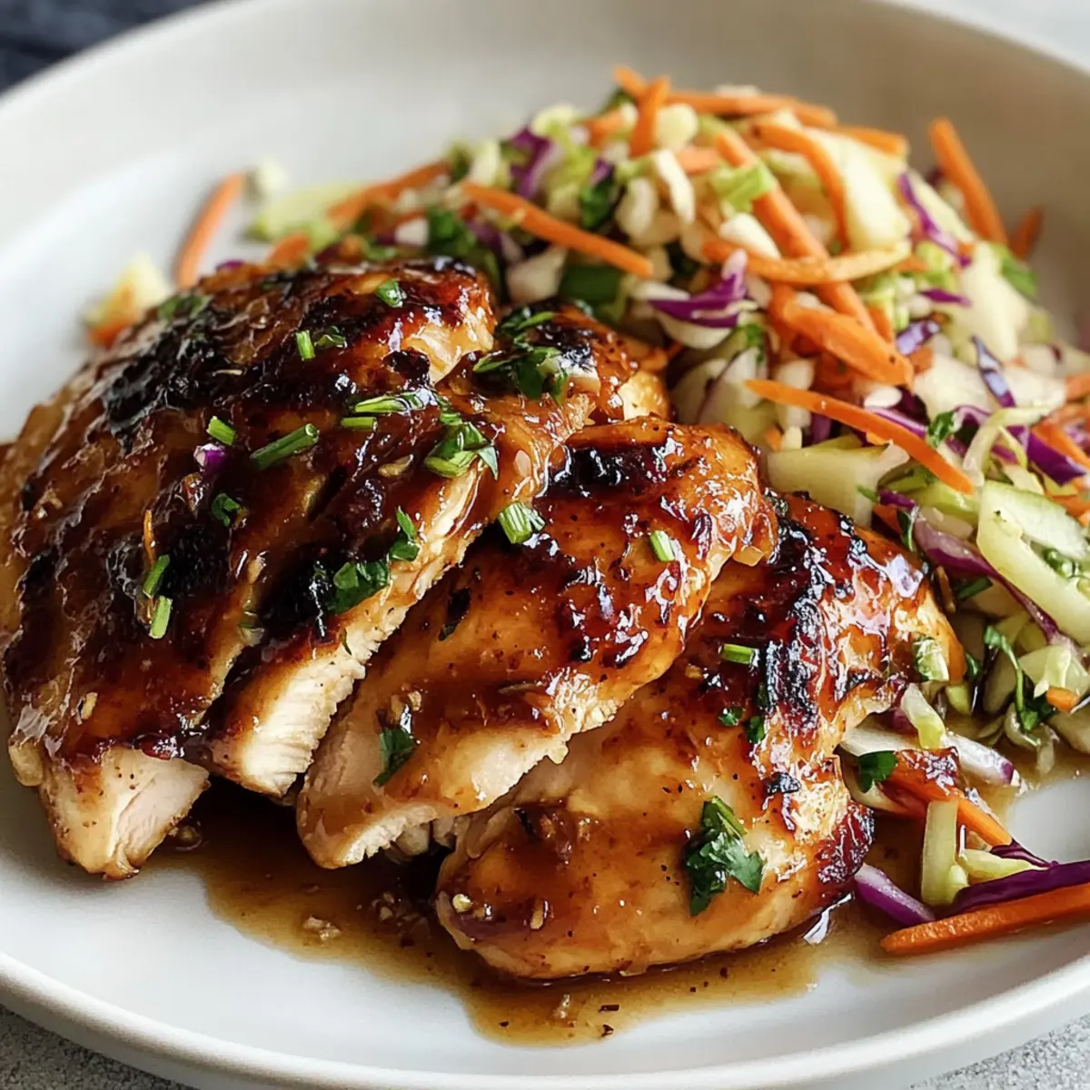 - Plate the glazed chicken alongside the slaw and serve immediately.