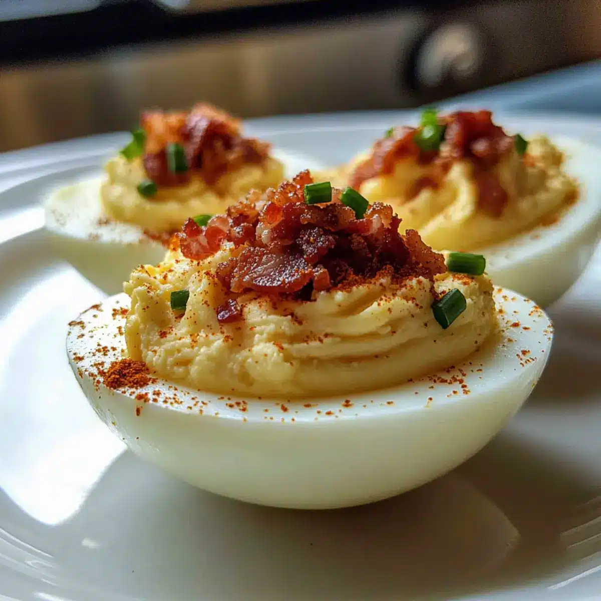 Crisp up thick-cut bacon in a skillet over medium heat until perfectly golden and crunchy, about 5 to 7 minutes. Once cooked, drain the bacon on paper towels and chop it into small pieces, reserving some for garnish. Gently fold the chopped bacon into your yolk mixture, ensuring even distribution. This savory layer complements the creaminess beautifully, enhancing your deviled eggs’ flavor profile.