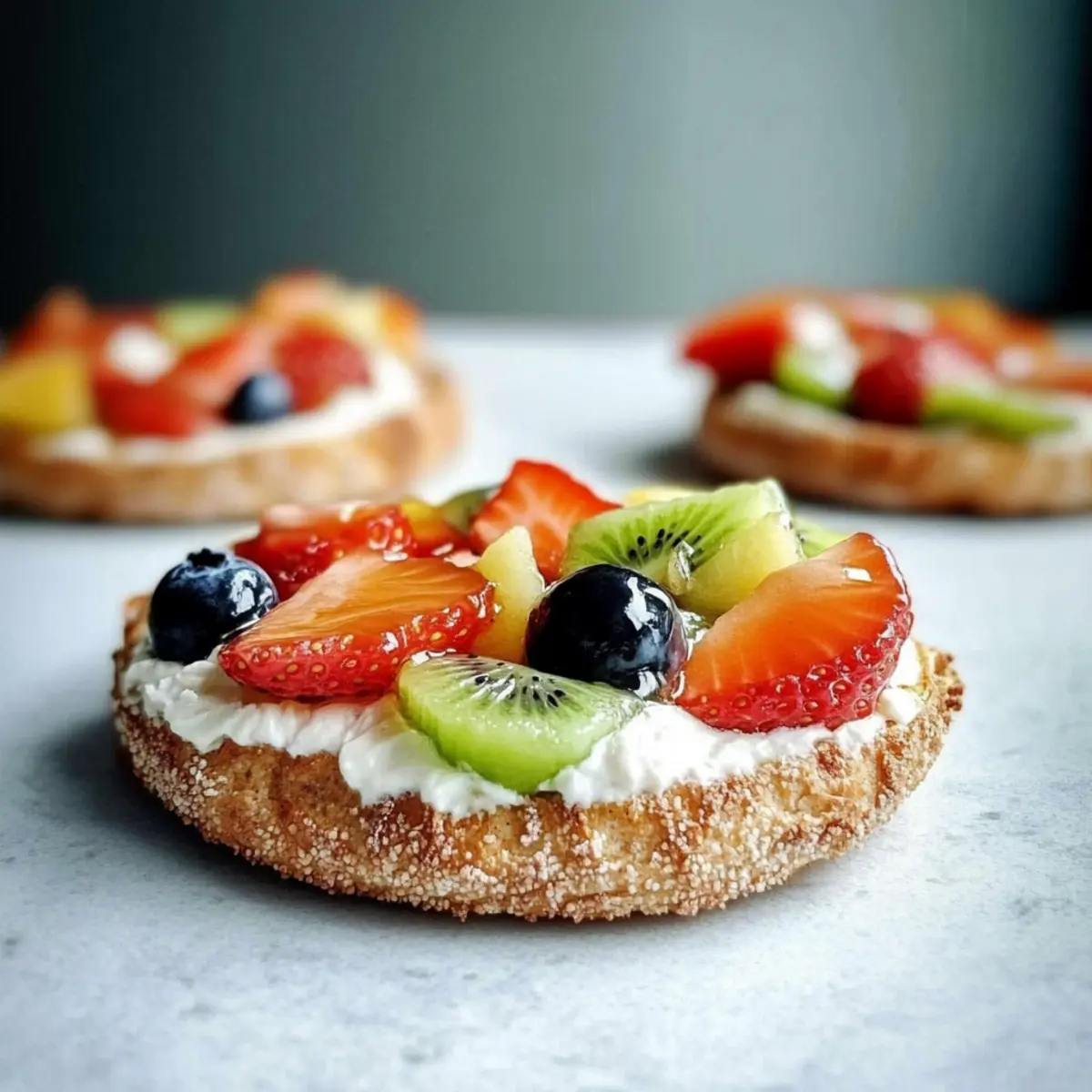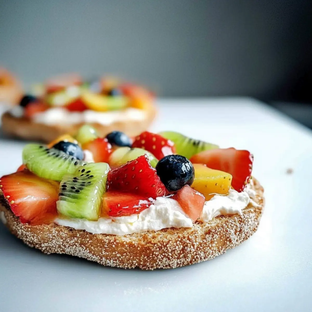 Begin by preheating your toaster or oven to 350°F (175°C). While it heats, slice the bagels in half and arrange them on the toaster tray or a baking sheet. Toast the bagels until they turn golden brown—this typically takes about 3-5 minutes. You want them to be warm and slightly crisp for a perfect base for your Bagel Fruit Pizzas.