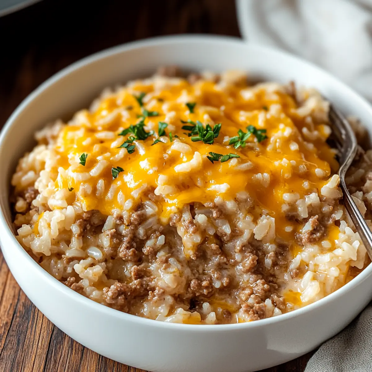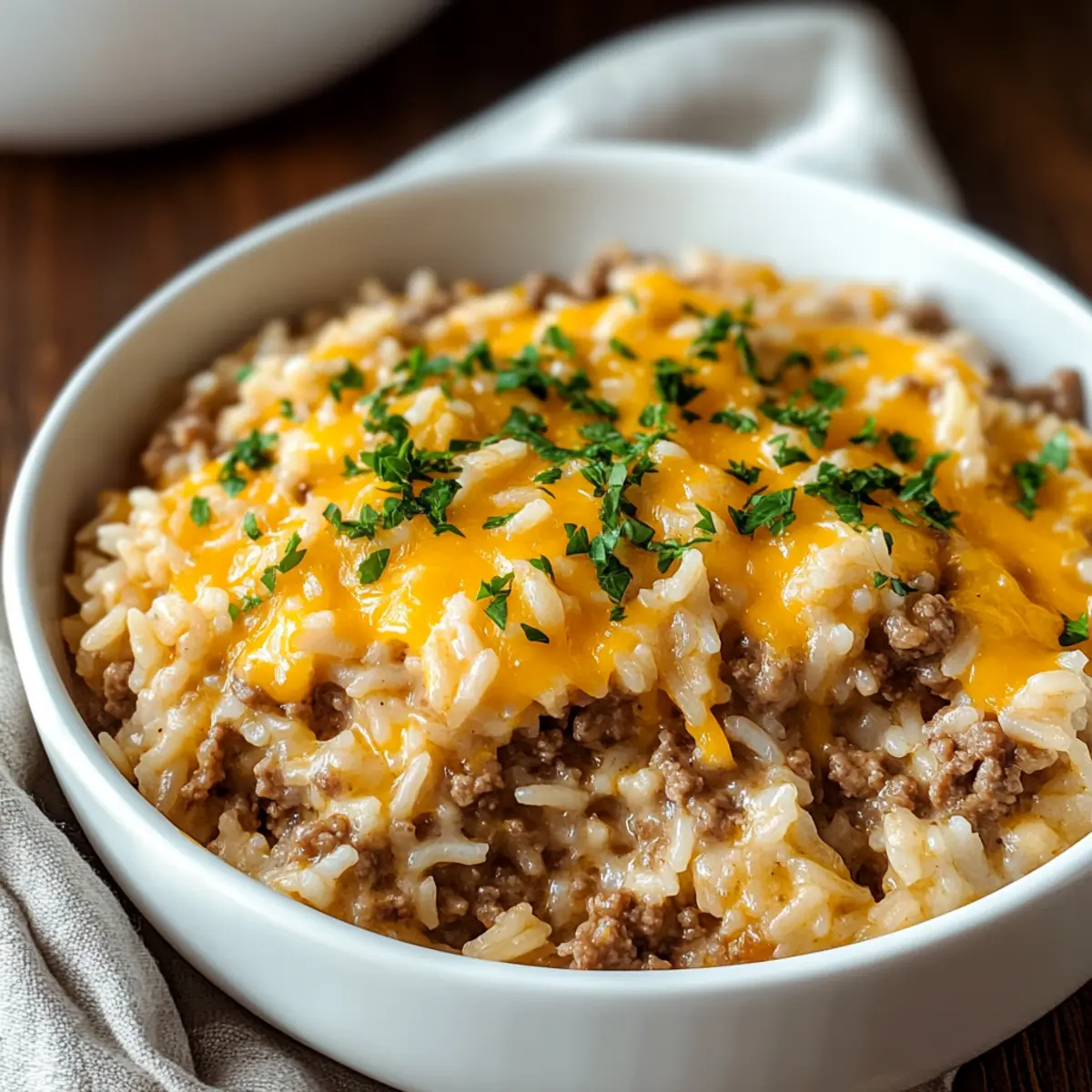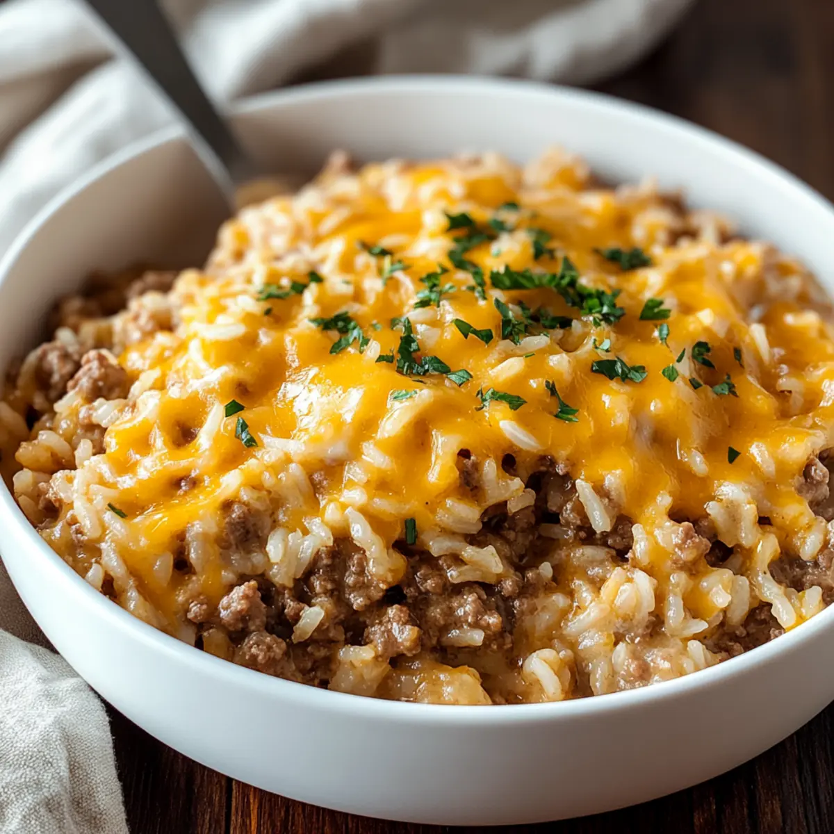 As I sifted through my pantry, a hidden treasure caught my eye: a box of rice just waiting to transform into something delicious. That’s when the idea for my Cheesy Ground Beef and Rice Casserole sparked to life! This recipe is not just a simple meal; it’s a hearty dish that whisks me back to those cozy family dinners where laughter filled the air and comfort food stole the show. Perfect for busy weeknights, this casserole comes together in no time, making it a wonderful choice for anyone seeking a quick and satisfying feast. Packed with pantry staples, it’s sure to turn leftovers into a flavorful family favorite that will leave your loved ones asking for seconds. Are you ready to rediscover the joy of homemade comfort food?