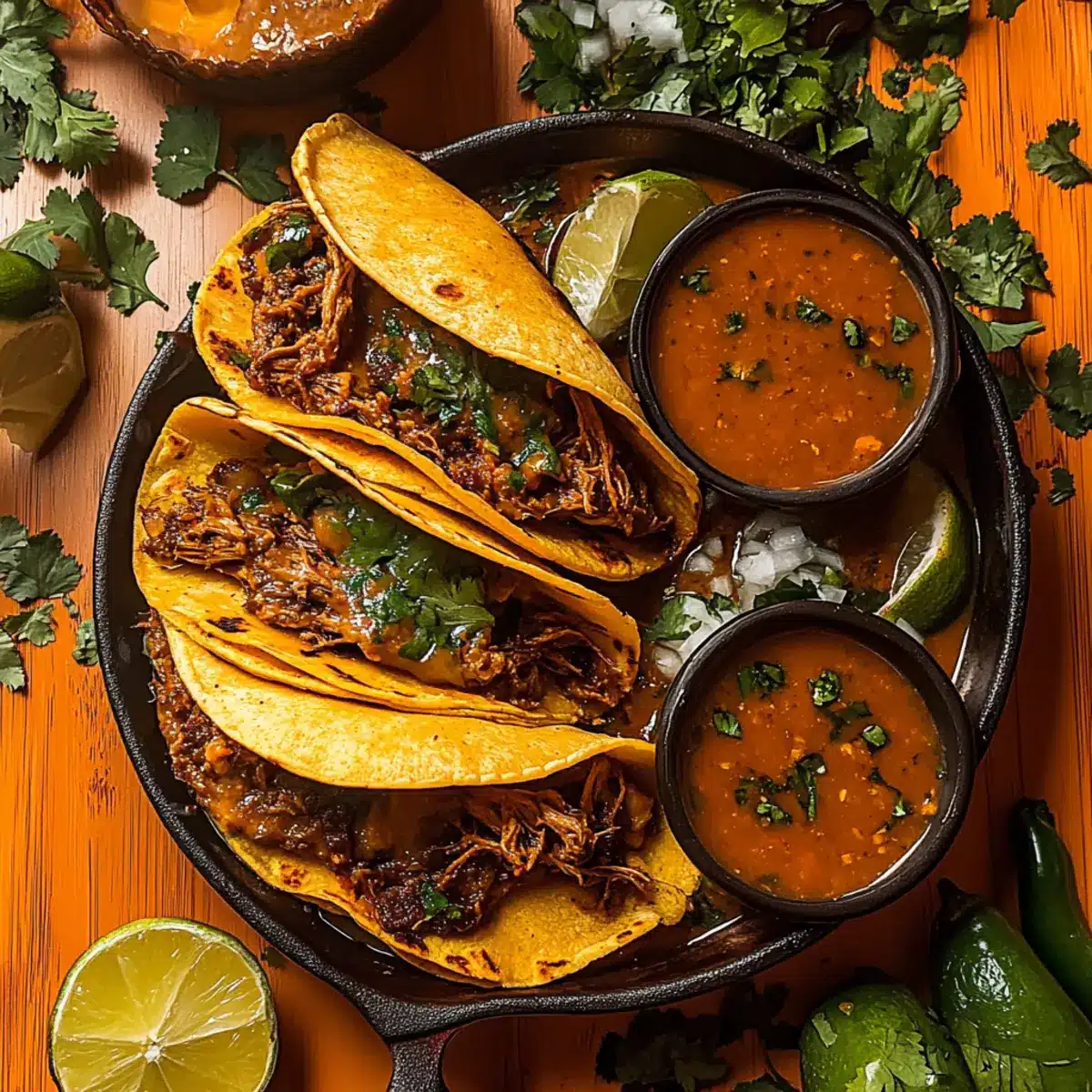 Use Fresh Ingredients: Fresh garlic, ripe tomatoes, and quality meat will enhance your birria tacos’ flavors significantly. Avoid old spices for the best taste!