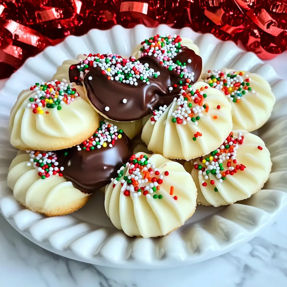 After your butter cookies are completely cooled, it’s time to add a festive touch! Melt 1 cup of chocolate chips with 1 tablespoon of coconut oil in a microwave-safe bowl, heating in 30-second intervals, stirring until smooth. Dip the cooled cookies halfway into the chocolate, allowing excess to drip off. Finally, sprinkle your favorite colorful decorations or sprinkles on top, and let the chocolate set before storing or serving.
