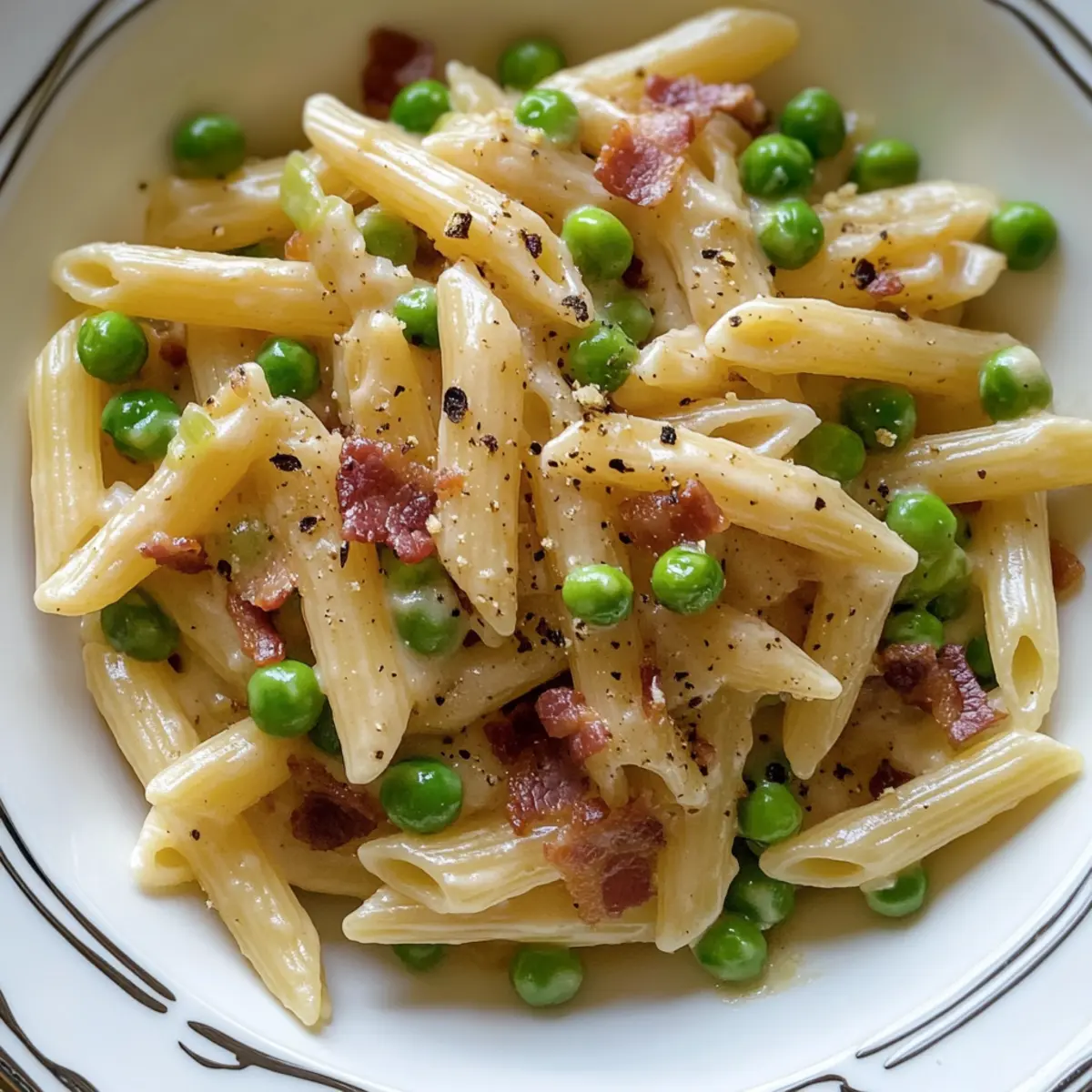 Delicious Penne Pasta with Peas and Bacon in 20 Minutes