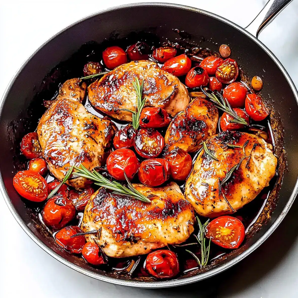 One Pan Balsamic Chicken with Juicy Burst Tomatoes