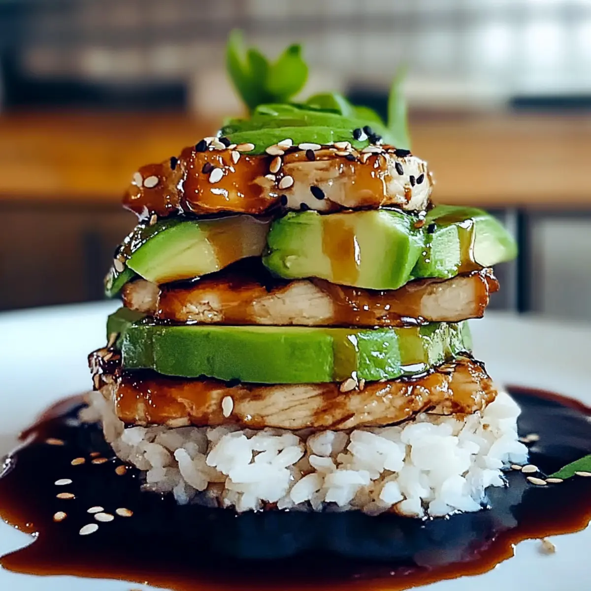 Teriyaki Chicken Avocado Rice Stack: A Quick Healthy Delight