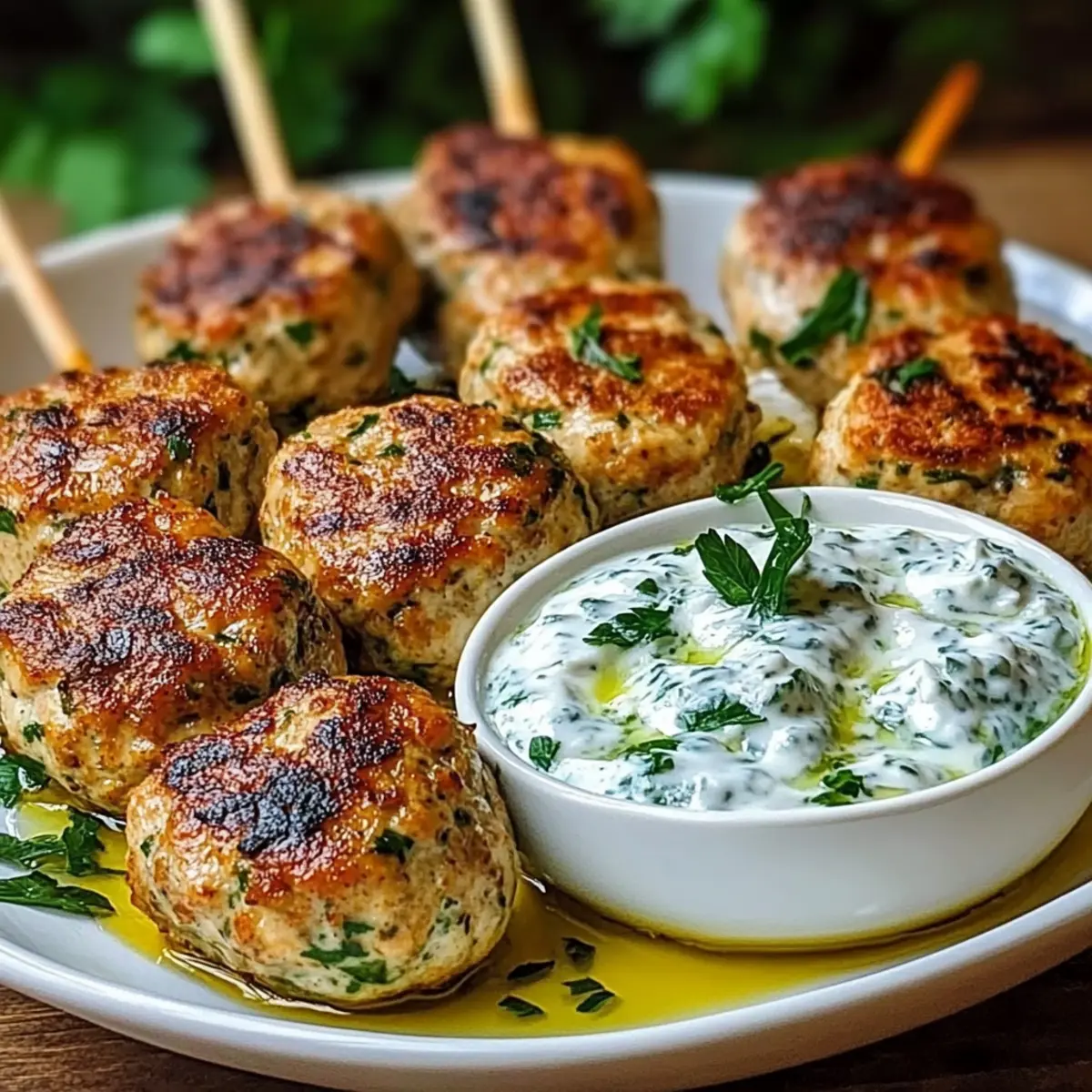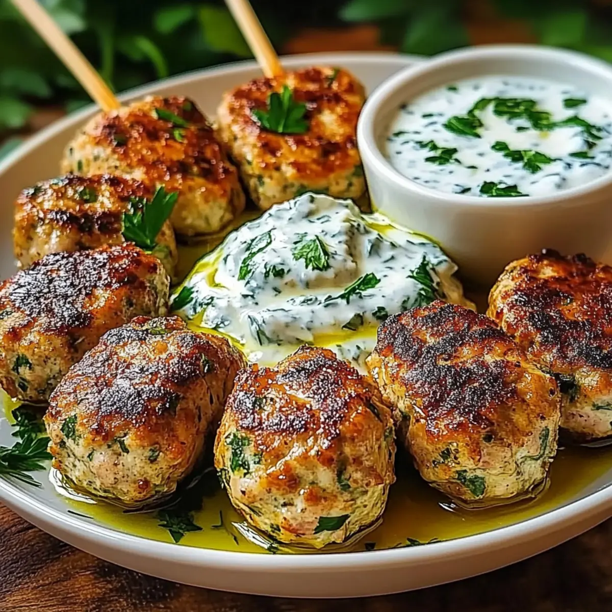 Savory Chicken Kofta with Creamy Garlic Yogurt Sauce Delight