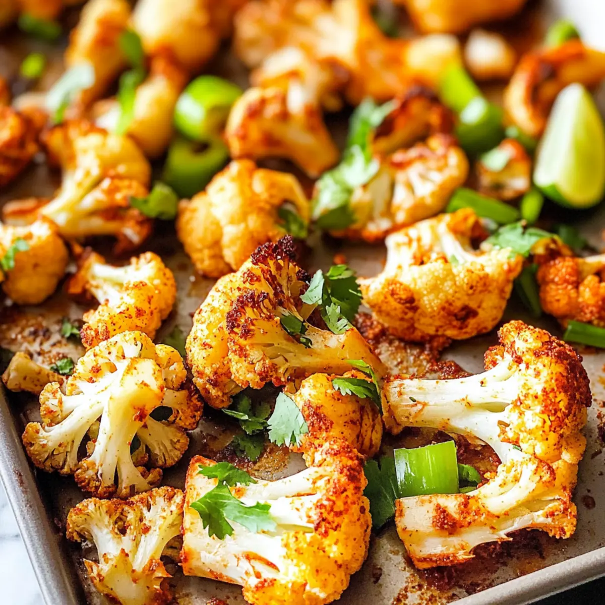 Once roasted to perfection, remove the baking sheet from the oven. Squeeze fresh lime juice over the hot cauliflower and sprinkle with chopped scallions for a burst of color and flavor. This final step elevates your Chili Lime Roasted Cauliflower to a beautifully vibrant dish.