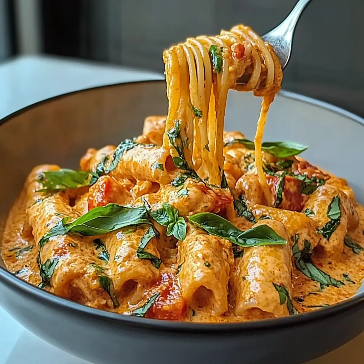 Gently add the cooked pasta to the skillet, tossing it with the creamy tomato sauce until thoroughly coated. This ensures that every strand of pasta is enveloped in the luscious sauce. Allow it to heat for another minute, ensuring that the pasta is warm and fully mixed with the sauce.