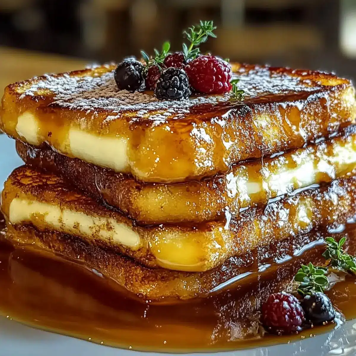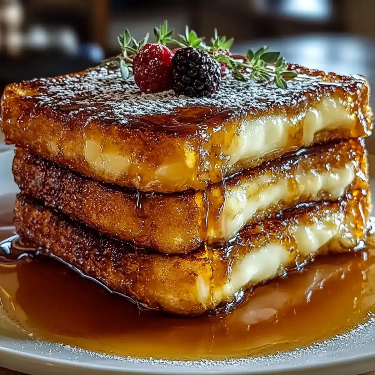 - Allow your Crème Brûlée French Toast to cool slightly before serving. Consider topping with fresh berries, a dusting of powdered sugar, and a drizzle of maple syrup.
