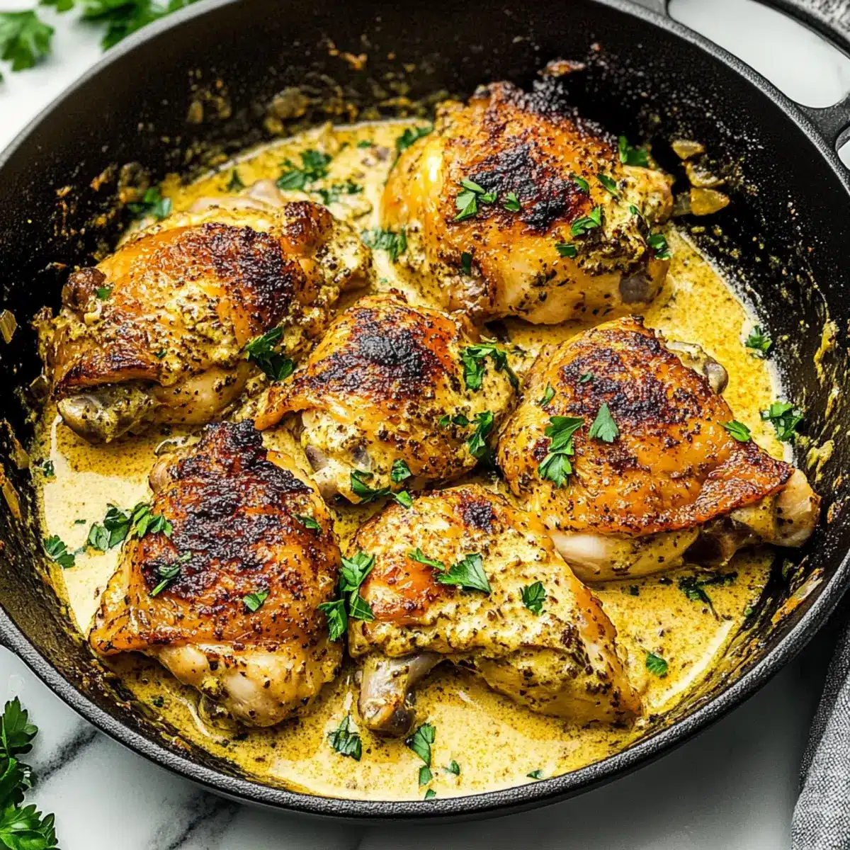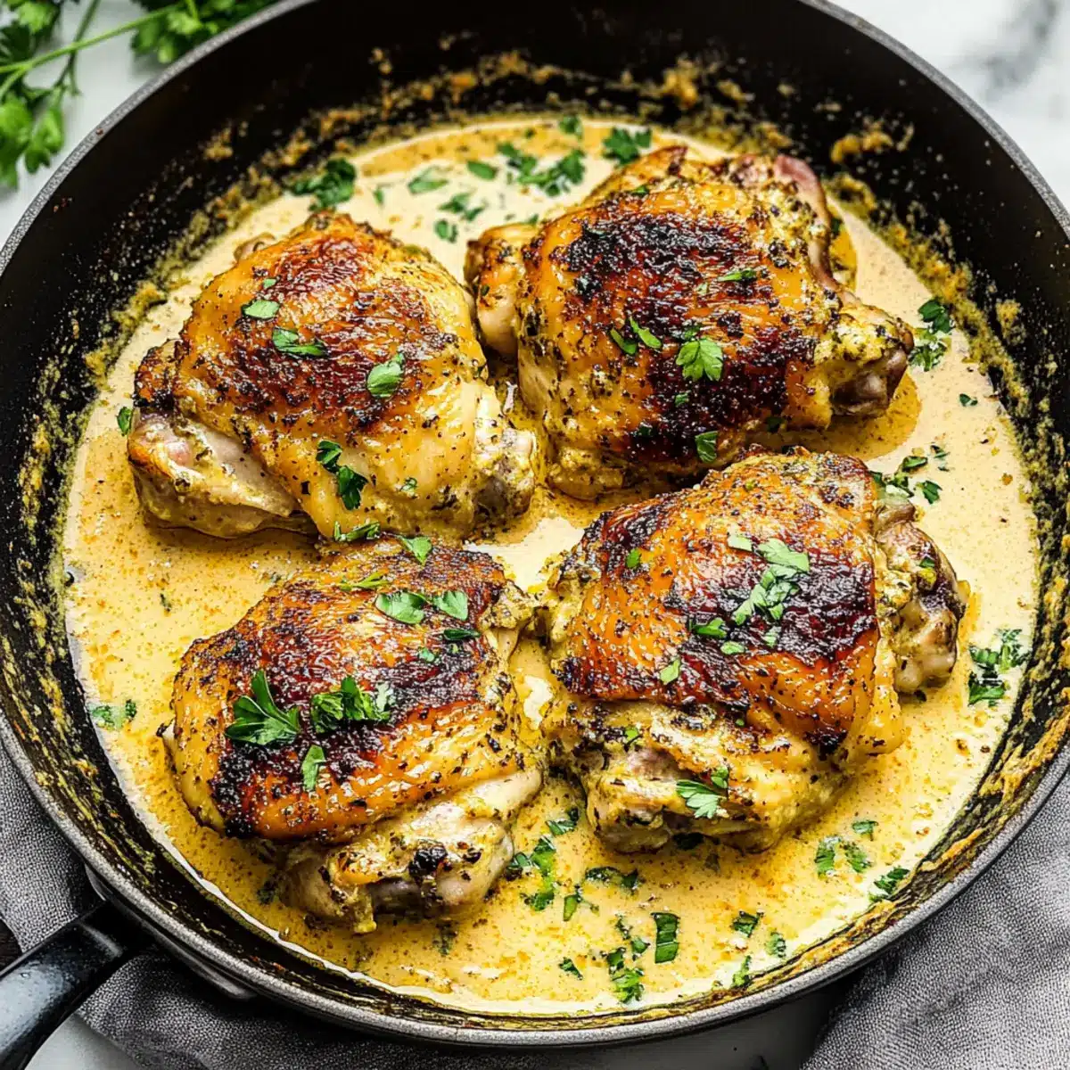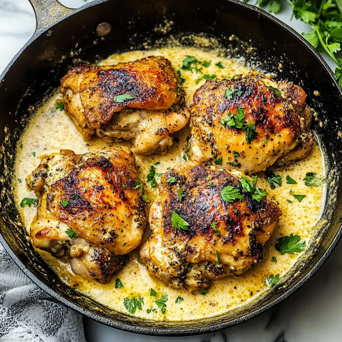 Easy Skillet Chicken Thighs in Creamy Garlic Sauce Bliss