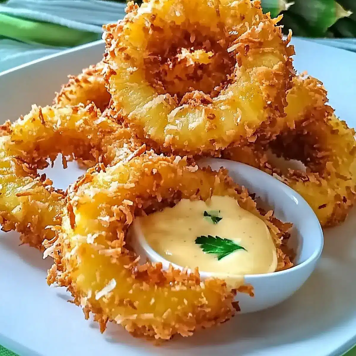 Coat Well: Make sure to press the coconut flakes firmly onto the pineapple rings after dipping to create a thicker, crunchier crust that stands out.