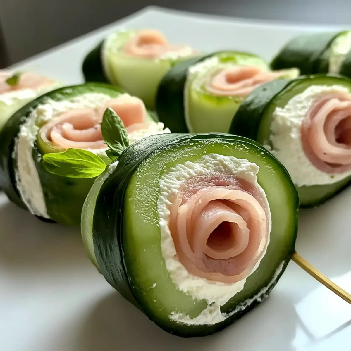 Ham & Cream Cheese Cucumber Rolls for Refreshing Snacking