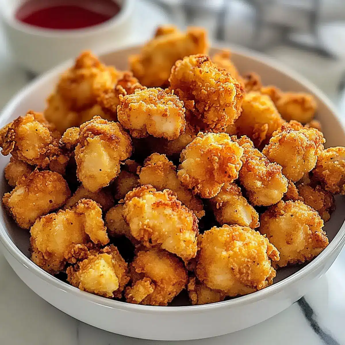 Very important! Once cooled, store leftover popcorn chicken in an airtight container in the fridge for up to 3 days. This helps retain its crunchiness and flavor. To maintain its crispy texture, I often reheat it in the oven or air fryer rather than the microwave, which can make it soggy.