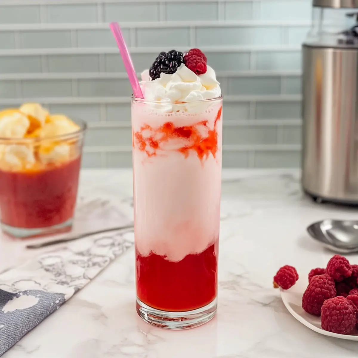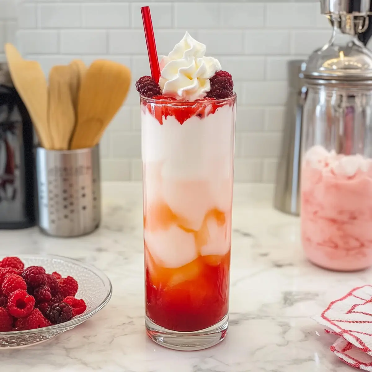 These Italian Cream Sodas are perfect for busy home cooks looking to save time without sacrificing flavor! You can prepare the fruit syrup (6-8 tablespoons per glass) up to 2 weeks in advance by storing it in an airtight container in the refrigerator, ensuring it stays fresh and flavorful. Meanwhile, make the cream mixture (heavy cream and optional whipped cream) ahead of time and store it in a separate container for up to 3 days. When you’re ready to serve, simply fill your glass with crushed ice, add the syrup, pour in fresh club soda, top with the prepared creams, and give it a gentle stir for that delightful fizz and creamy finish. Enjoy the ease of preparation while delighting your family with this bubbly treat!