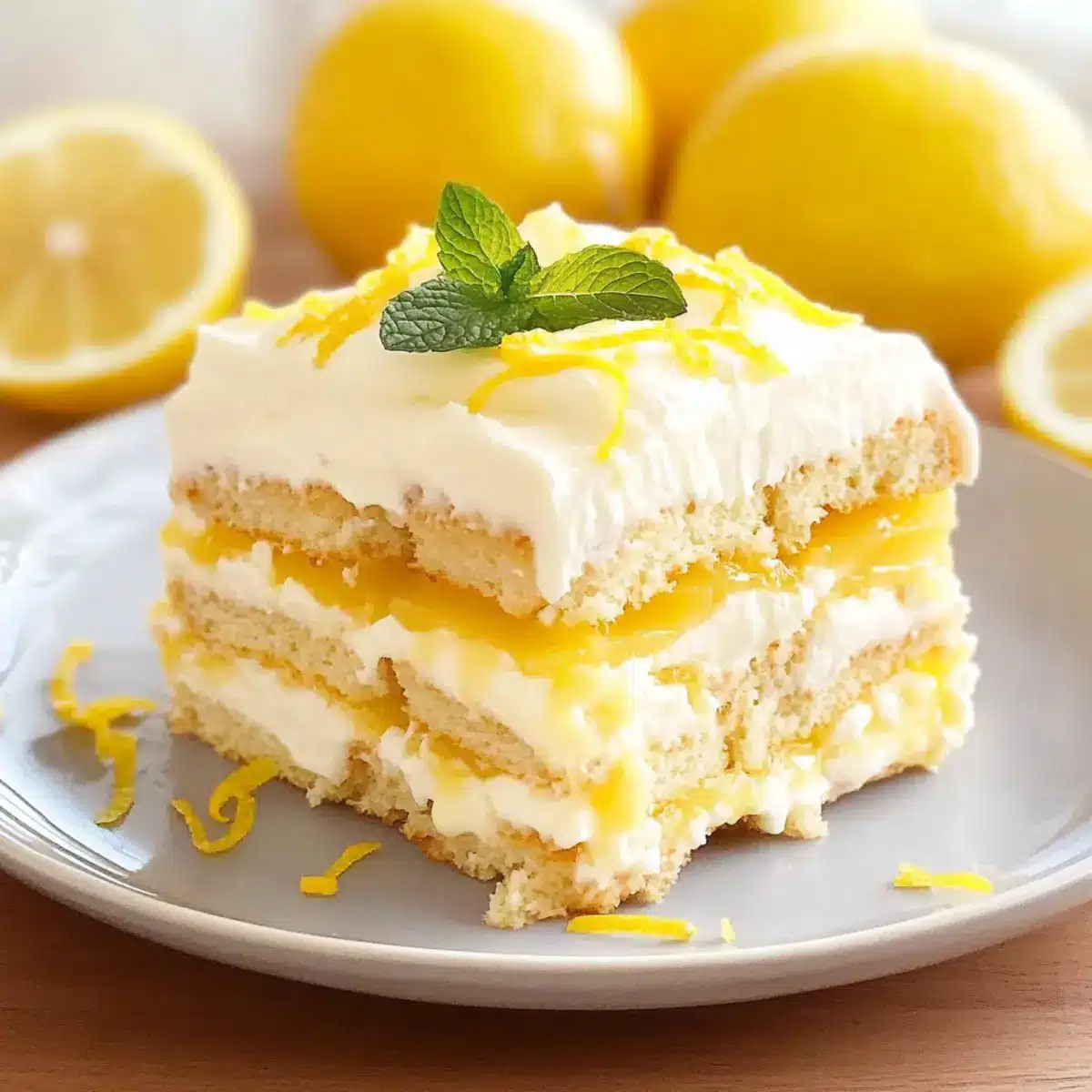 - Garnish Creatively: Use fresh mint leaves, additional lemon zest, or candied lemon slices for a beautiful presentation. These garnishes also enhance the refreshing flavor of your Lemon Tiramisu!