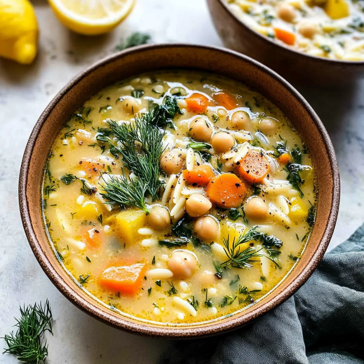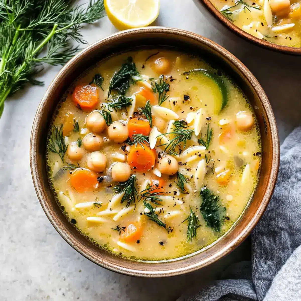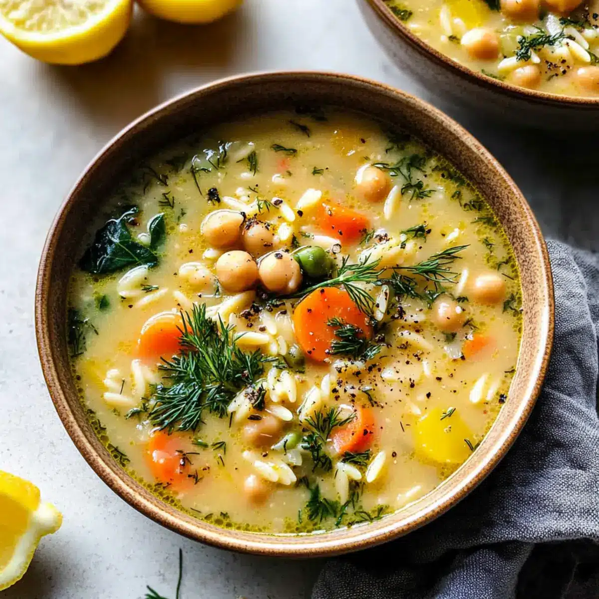 As the rich aroma of sautéing garlic fills my kitchen, I reflect on the power of simple ingredients to create something extraordinary. Enter Lemony Greek Chickpea Soup—a delightful twist on the classic Avgolemono. This vegetarian gem is not just heartwarming but also protein-packed and bursting with vitality, making it an ideal choice for both a quick weekday lunch and a relaxed dinner. With a silky texture that wraps around tender orzo and fresh vegetables, this dish is ready in just over 30 minutes, perfect for anyone craving wholesome homemade comfort that won’t keep them in the kitchen all evening. Want to transform your dinner routine with a soup that feels like a warm hug? Let’s dive into this vibrant bowl of goodness together!