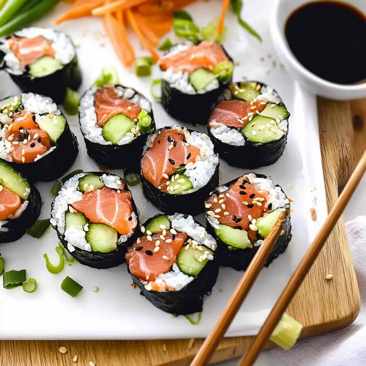 Customizable and Versatile: This recipe allows for endless variations, so you can mix and match fillings based on your preferences—whether you prefer smoked salmon, tofu, or an array of veggies. Quick Prep Time: Whipping up these sushi rolls takes only 15 minutes, making them perfect for busy weeknights or last-minute gatherings. Health-Conscious Choice: With low carbs and high protein, they’re an ideal option for anyone looking to maintain a healthy lifestyle. Impress Your Guests: Serve these vibrant rolls as an impressive appetizer at your next dinner party; they’ll be the talk of the table! For more delicious meal ideas, check out our Spicy Salmon Sushi for a twist on the classic.