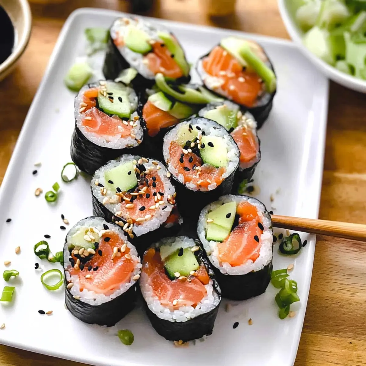 - Spicy Cucumber Salad: This sweet and spicy salad provides a lovely kick, enhancing the sushi and adding a crisp crunch to each bite.