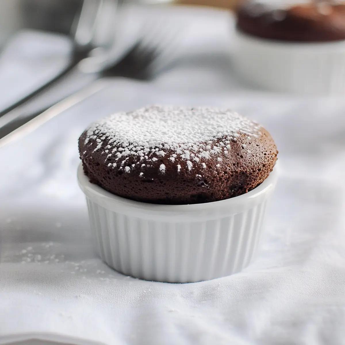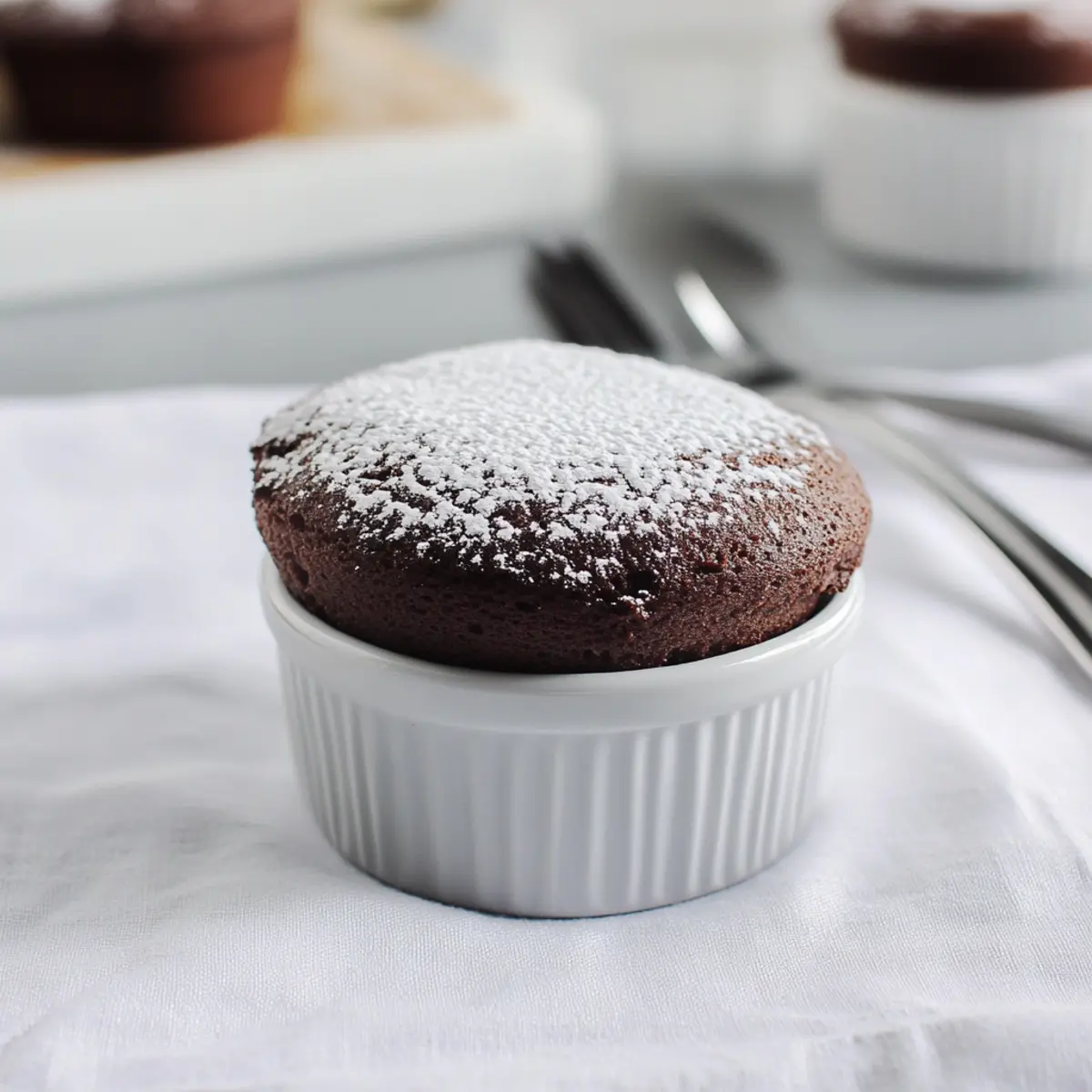 Once baked, remove the soufflés carefully from the oven and dust them with powdered sugar for a lovely finishing touch. Serve your Low-Fat Chocolate Soufflé immediately while they’re still warm and puffed, as they will begin to deflate quickly. Enjoy this impressive dessert with friends or family for a delightful treat!