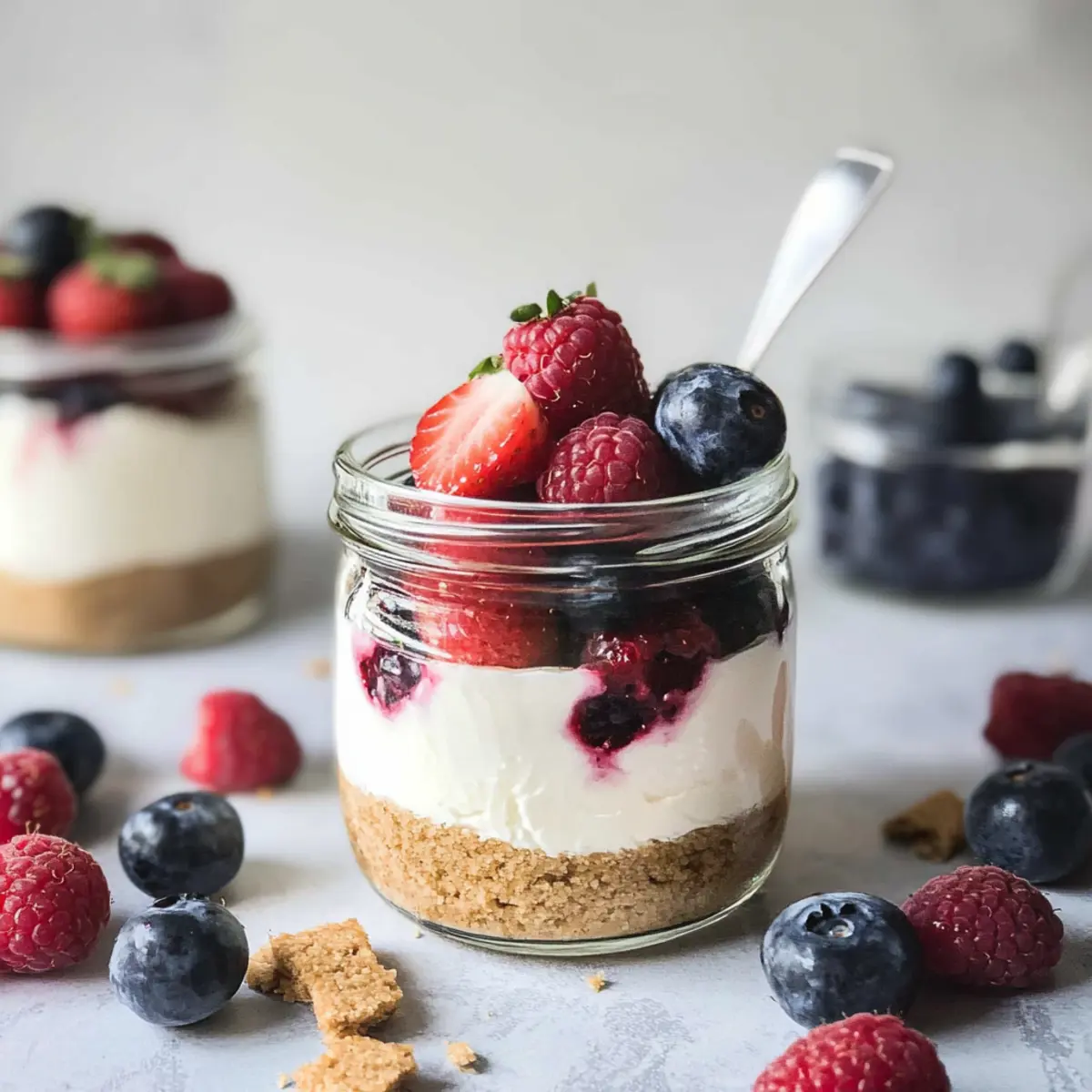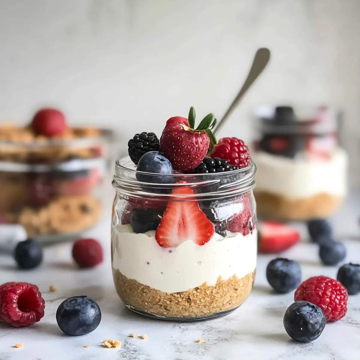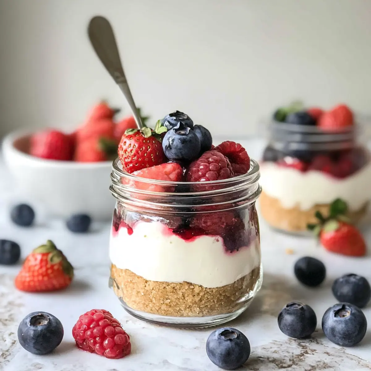 These No-Bake Cheesecake Jars are a fantastic option for meal prep enthusiasts! You can prepare the crust (graham cracker crumbs mixed with melted butter) and filling (cream cheese, yogurt, sugar, and flavorings) up to 24 hours in advance. Just store the crust in an airtight container at room temperature, and keep the filling tightly covered in the fridge to maintain its creamy texture. When you’re ready to serve, simply layer the cheesecake filling into the jars atop the crust, add your fresh berries, and allow them to chill for at least 30 minutes before enjoying. This method allows you to save time and still enjoy delicious dessert that’s just as delightful as when freshly made!
