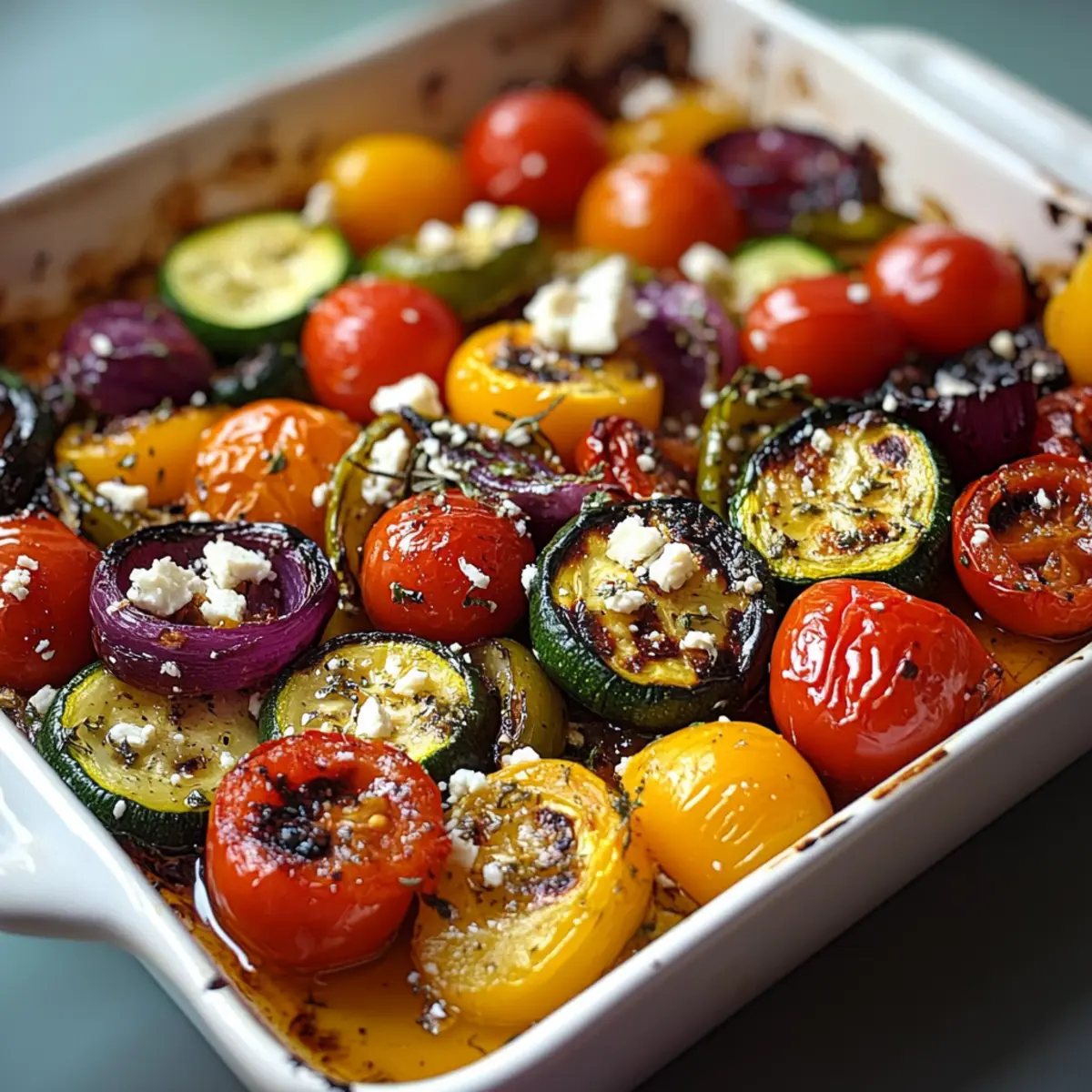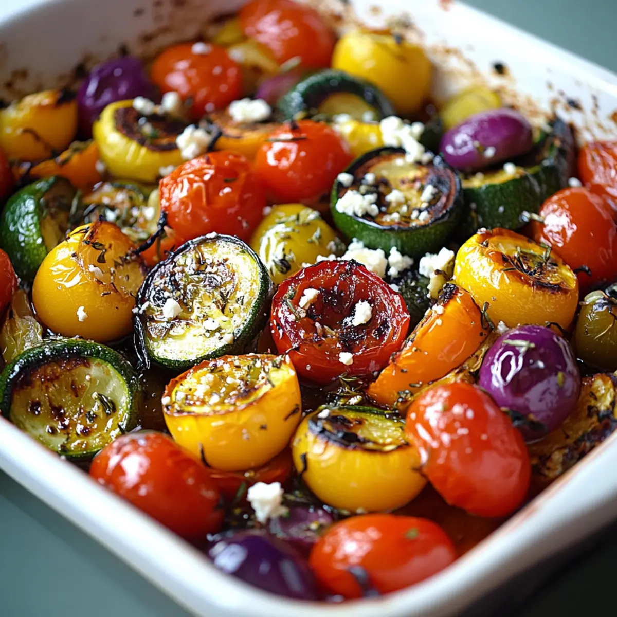 These One Pan Greek Vegetables are perfect for meal prep enthusiasts looking to save time during busy weeknights! You can wash and chop your mixed vegetables (like zucchini, bell peppers, and cherry tomatoes) up to 24 hours in advance and store them in an airtight container in the refrigerator. Alternatively, you can toss the vegetables with olive oil, oregano, and garlic up to 3 days ahead for even more flavor development; just be sure to place them in a bowl covered with plastic wrap. When you’re ready to serve, simply spread the prepped vegetables on a baking sheet, roast them as directed, and sprinkle with feta cheese right after removing from the oven for a deliciously fresh side dish that’s just as vibrant and flavorful!