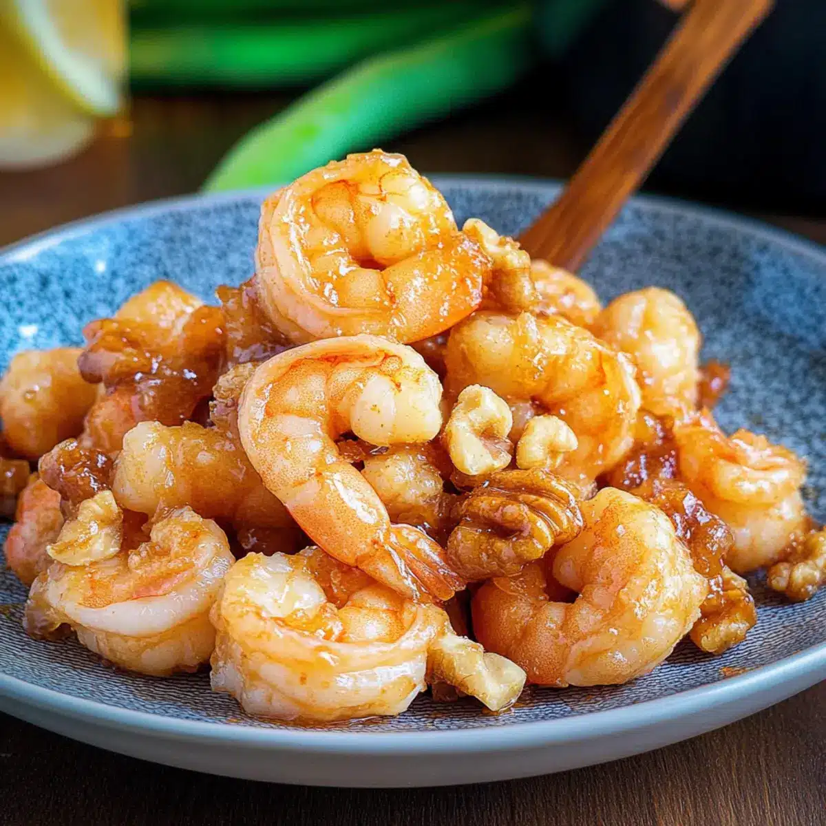 Crispy Texture: Enjoy the delightful crunch of perfectly fried shrimp paired with sweet, glazed walnuts.