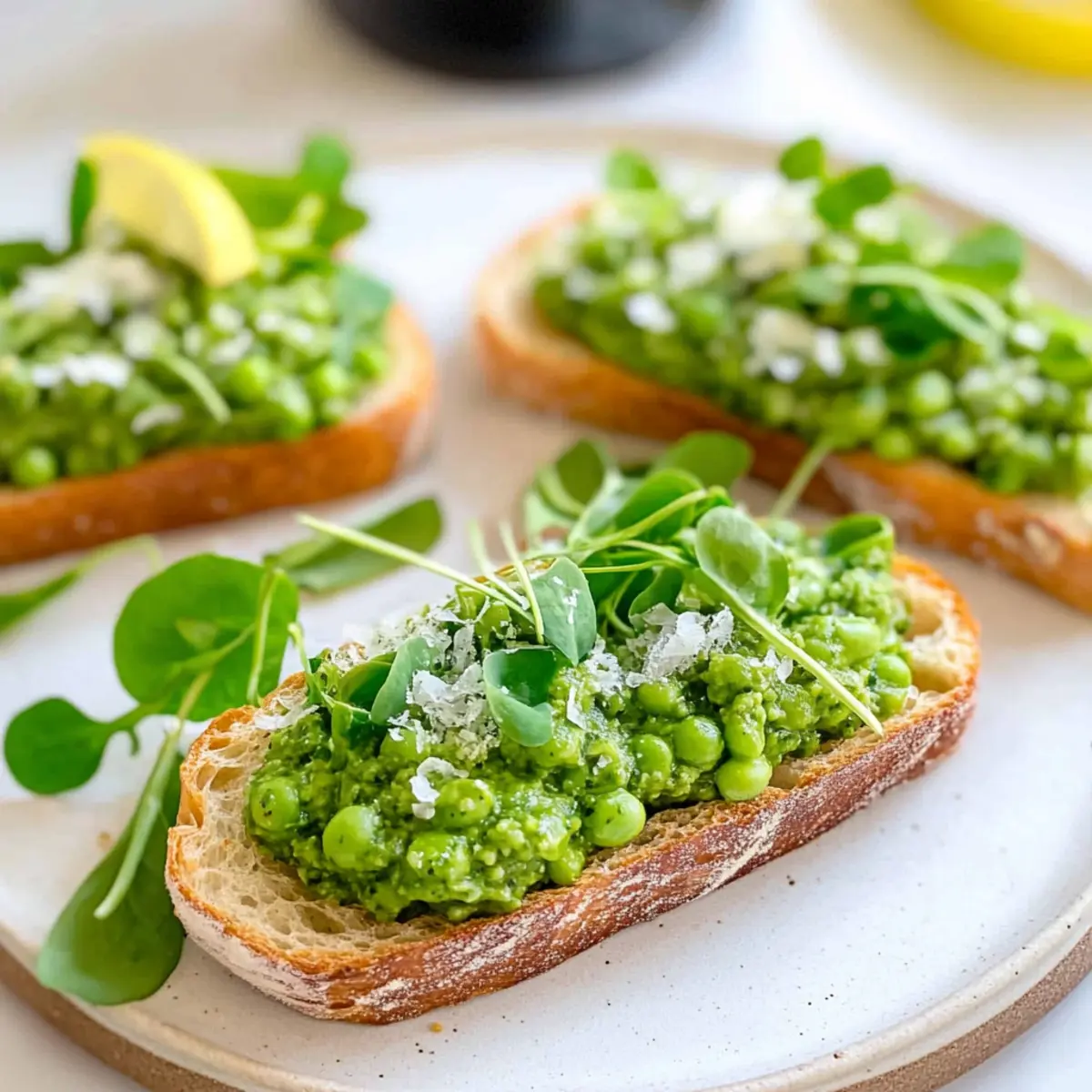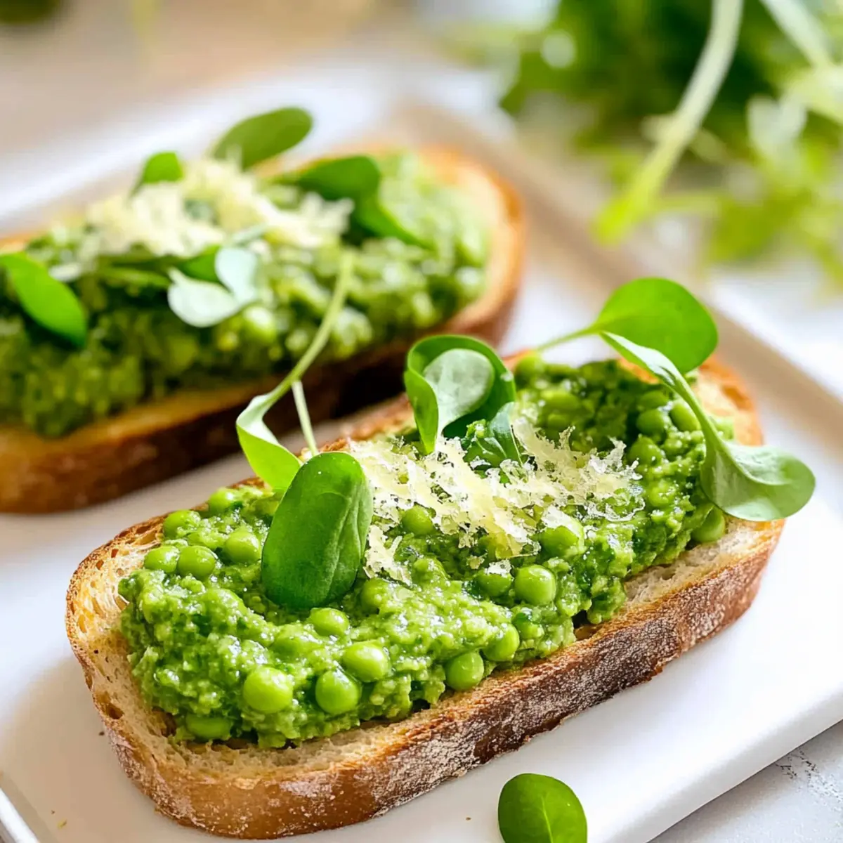 Reheating: If freezing the bread, reheat the toasted slices in an oven at 350°F (175°C) for about 5-7 minutes to regain crispness before topping them with the pea mixture.