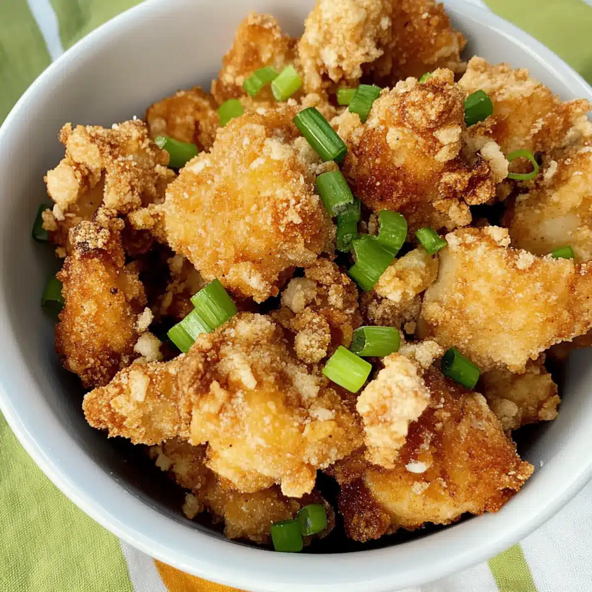 Reheating: To maintain crispiness, reheat the chicken in an air fryer at 350°F for about 5-7 minutes, shaking halfway through to ensure even heating.