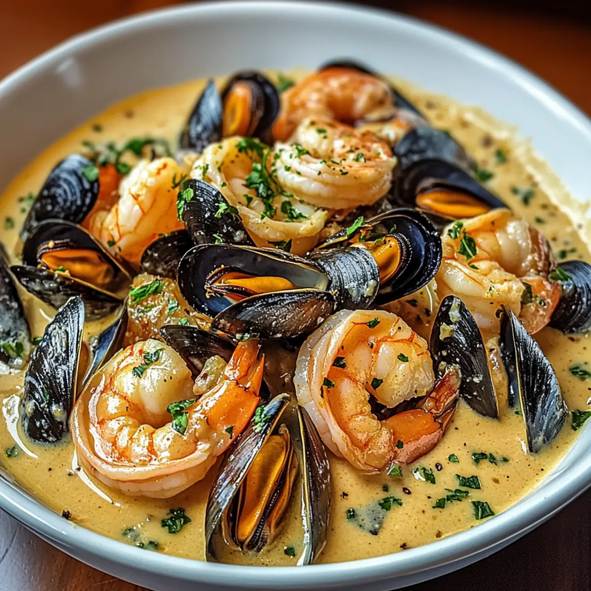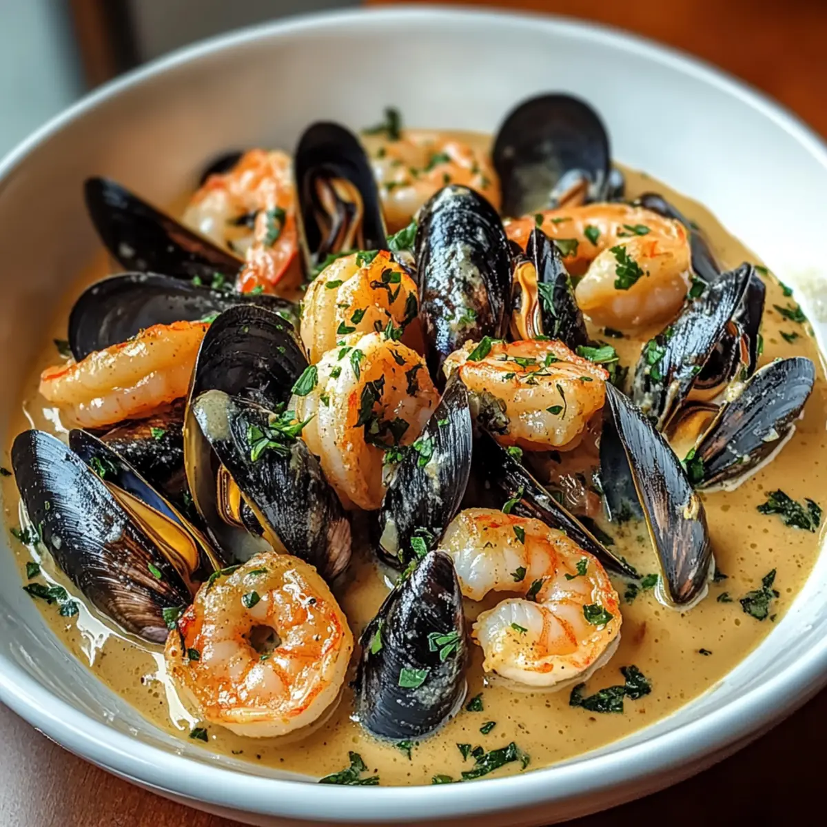 Shrimp and Mussels in Creamy Garlic: A Luxurious Feast