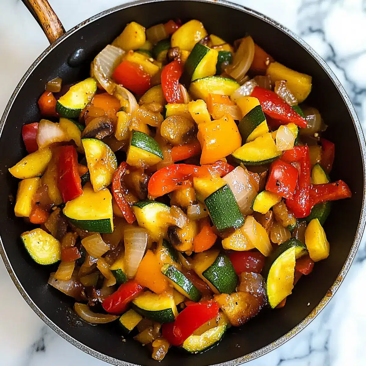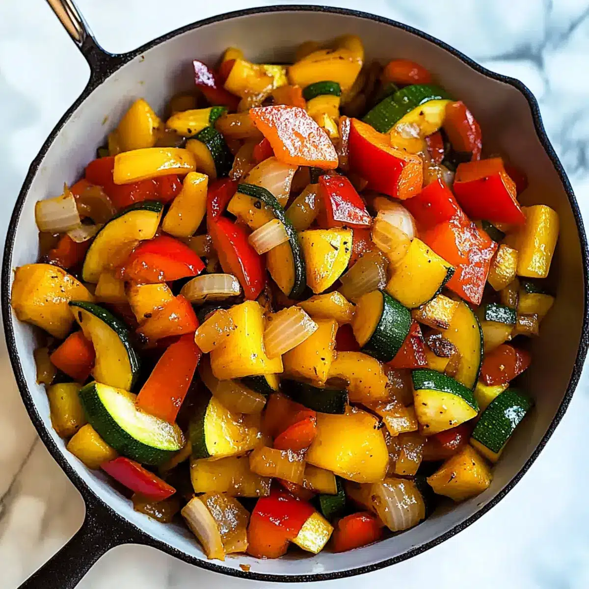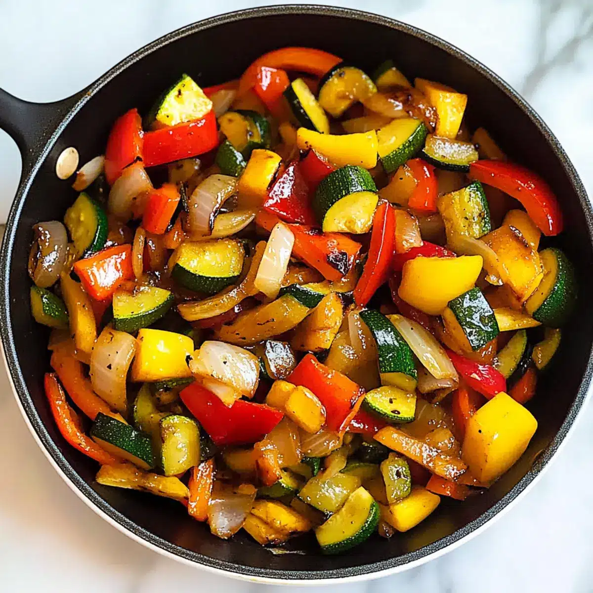 Once everything is cooked and well combined, remove the skillet from heat. Taste your Simple Sautéed Vegetables and adjust seasoning if needed. Serve them warm as a vibrant and healthy side dish, perfect alongside grilled meats or as a colorful addition to your favorite grain bowls. Enjoy the burst of flavors!