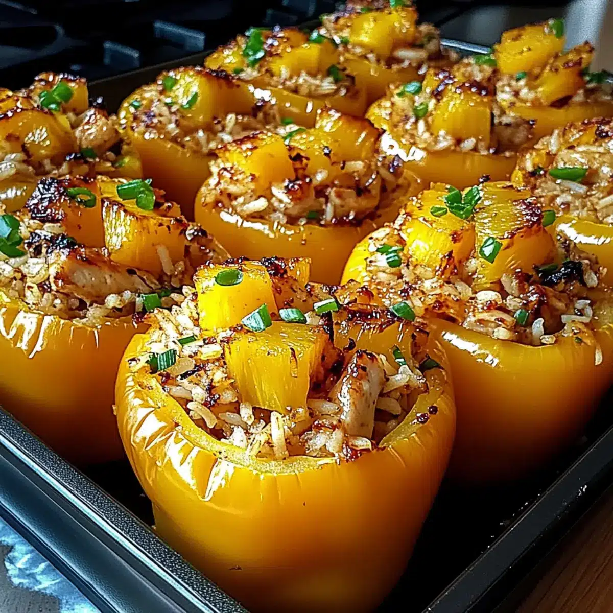 For an extra indulgent touch, remove the foil during the last 5 minutes of baking. If desired, sprinkle shredded cheese like mozzarella or cheddar on top of each stuffed pepper. Return them to the oven until the cheese is bubbly and melted, adding a rich, creamy layer that elevates your Teriyaki Pineapple Chicken dish to perfection.