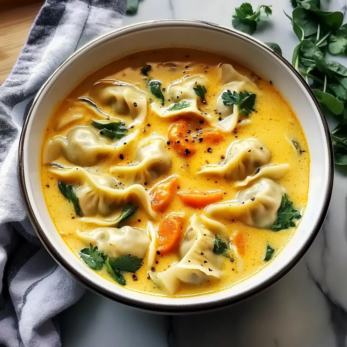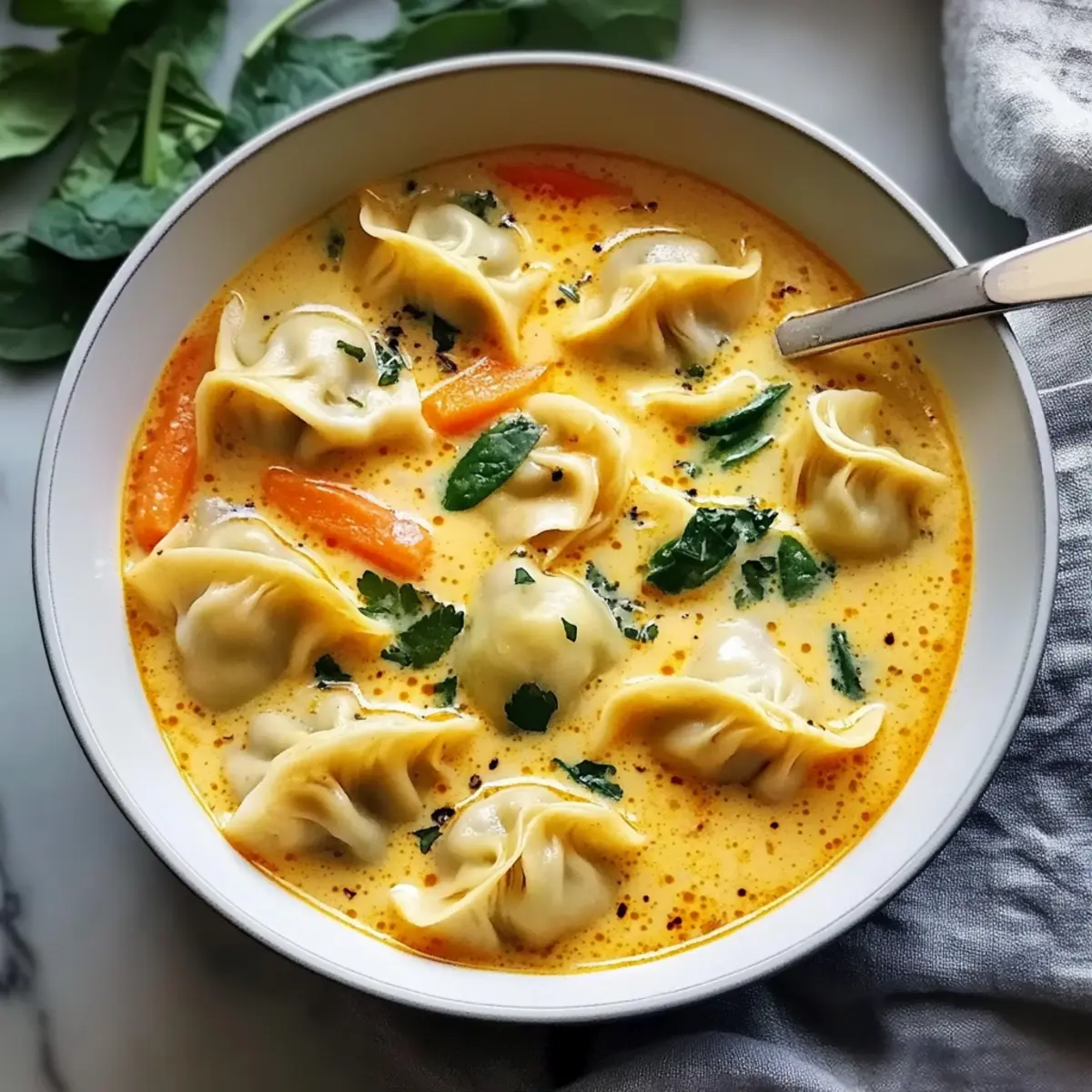 Once the dumplings are cooked, stir in 2 cups of baby spinach or chopped bok choy. Cook for an additional 1-2 minutes, or until the greens wilt slightly. This final addition brightens the dish while adding nutrition and color, completing your gorgeous Thai Coconut Curry Dumpling Soup.