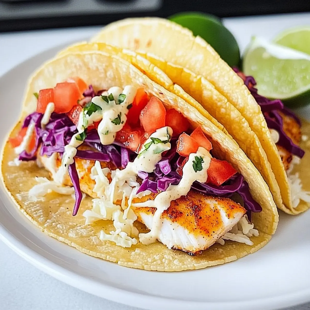 Plate your assembled baked tilapia fish tacos with lime wedges on the side. These vibrant tacos are best enjoyed fresh, showcasing the tender fish, crunchy toppings, and creamy sauce. Dive in and savor the delightful explosion of flavors, making this dish a memorable alternative to your usual takeout!