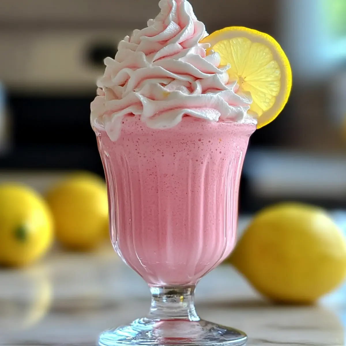 - Pour the mixture into serving glasses and garnish with a fresh lemon slice and whipped cream.