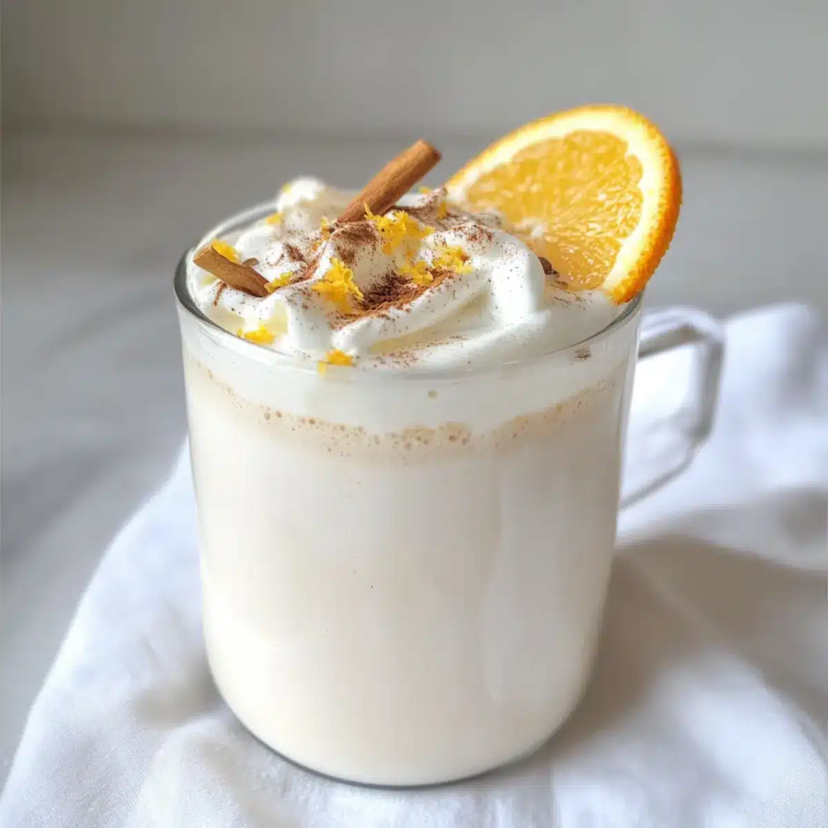 - Serve and Garnish: Pour into a mug and top with whipped cream, extra cinnamon, and orange zest.